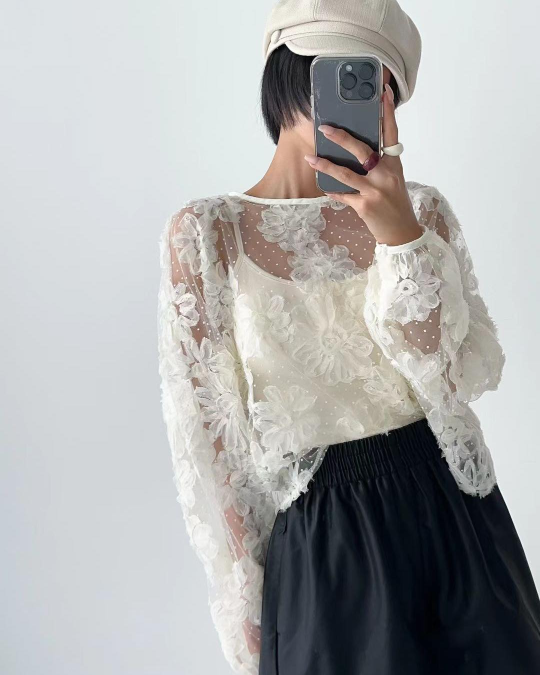 🇯🇵日本線 <網紗縮褶薄長袖上衣>
