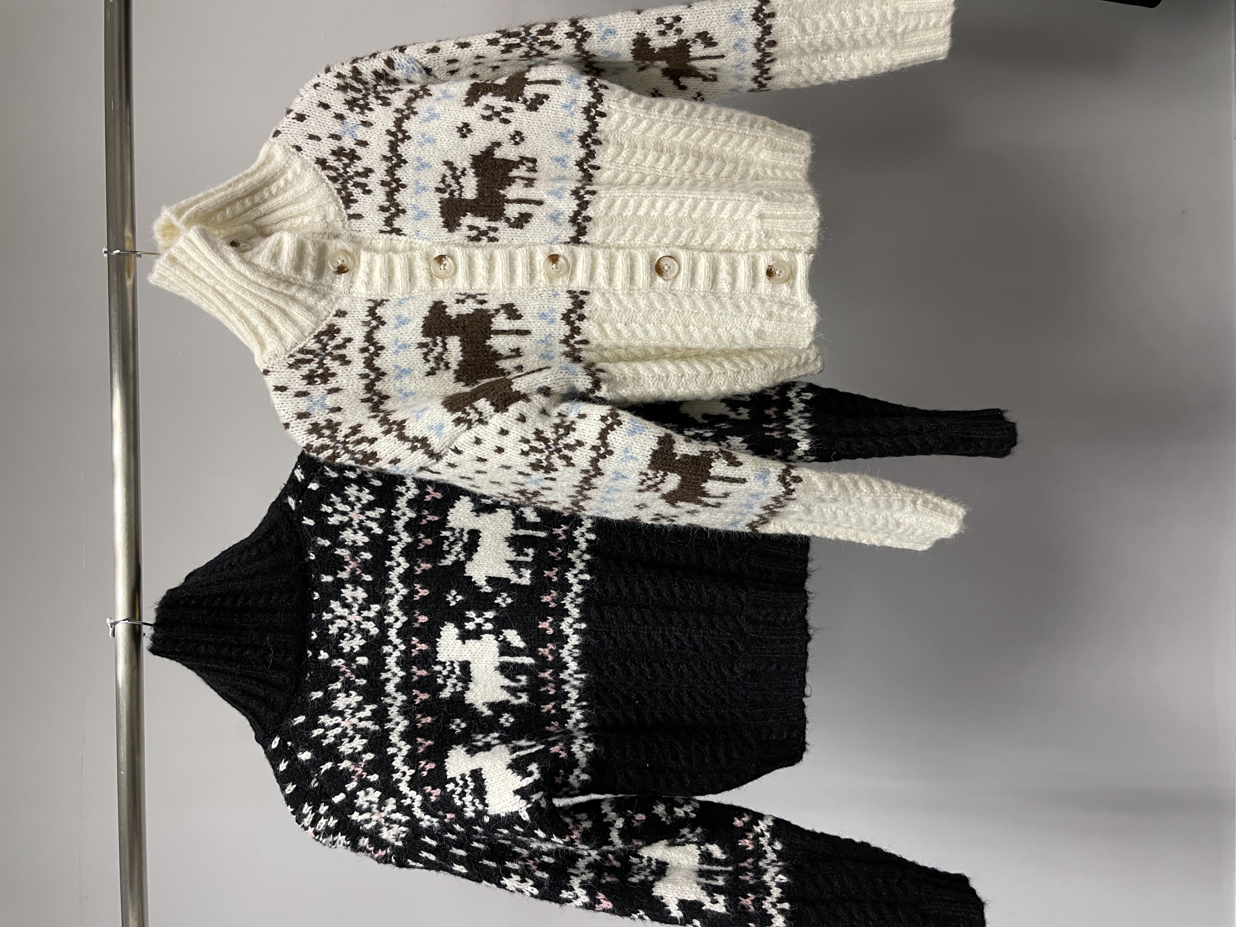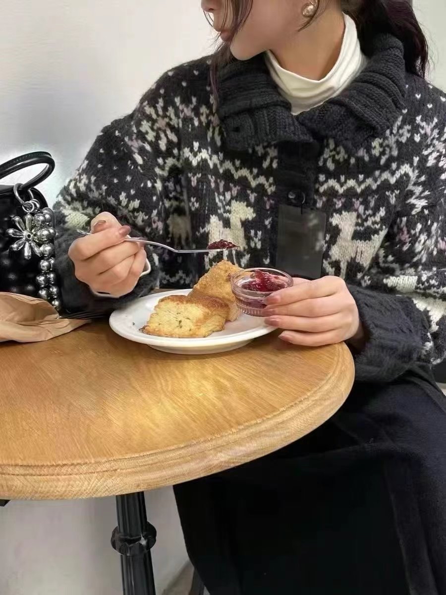 企領提花針織毛衣外套