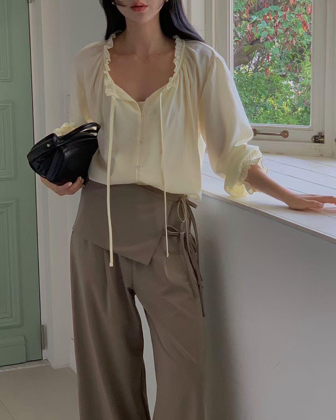 🔹薄西褲布料 🔹直腳褲筒,偏修身, 好顯修長 🔹可拆腰封, 可以遮下肚腩😂 🔹後腰橡筋 🔹返工著平底鞋, 放假配波鞋,兩個著法 尺寸:Free Size 腰圍(後腰橡根): 27" (平度), 34" (拉度) 坐圍: 40" 褲長: 40.5" model高度: 黑色褲:156cm 灰色褲:169cm