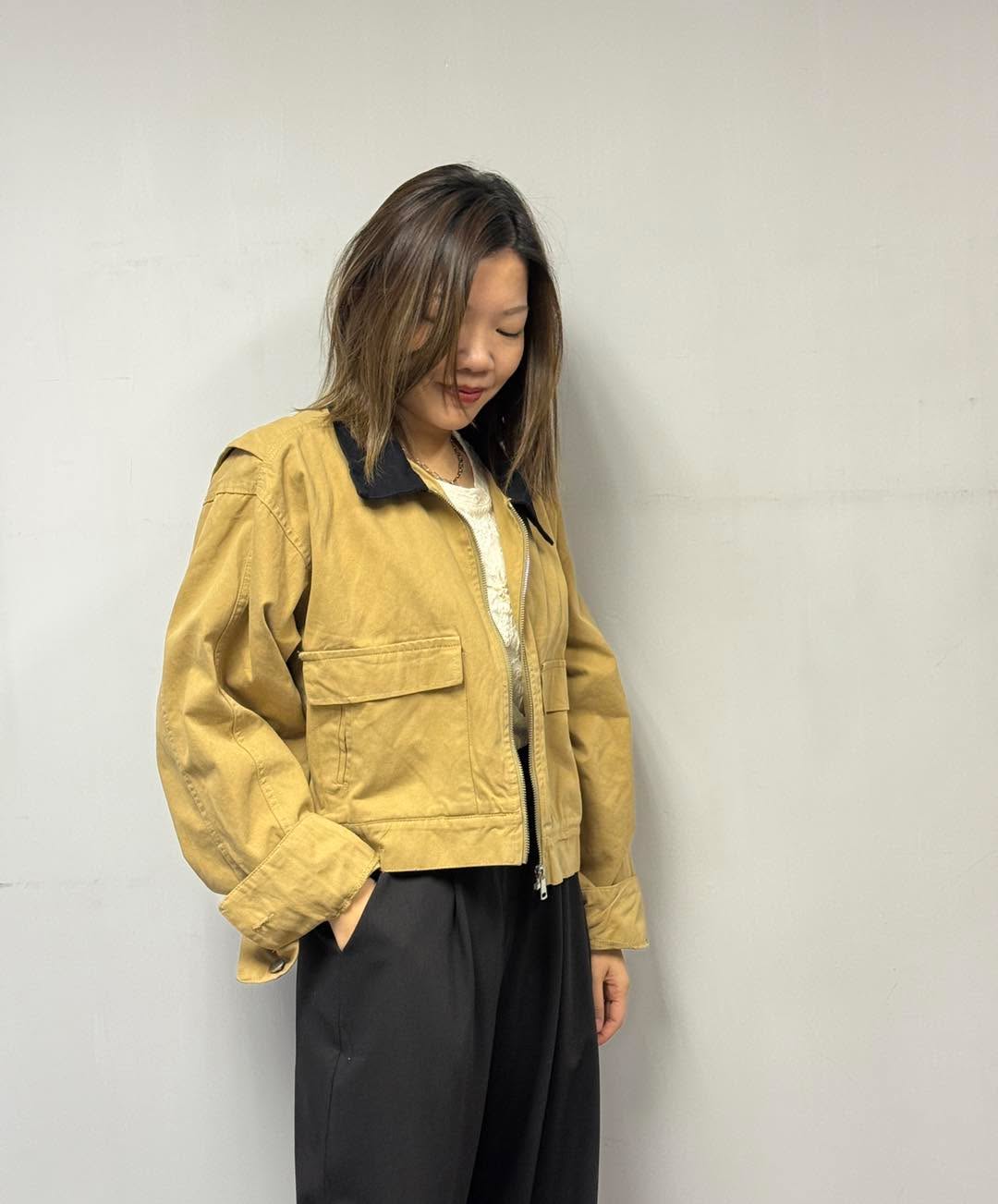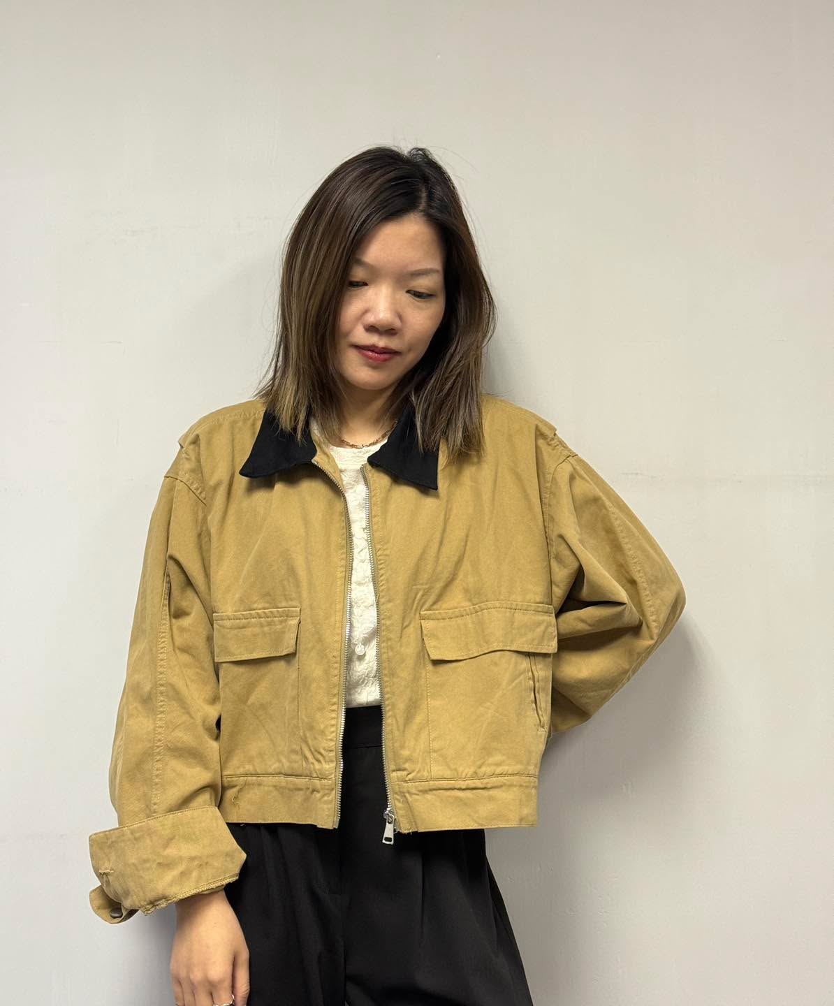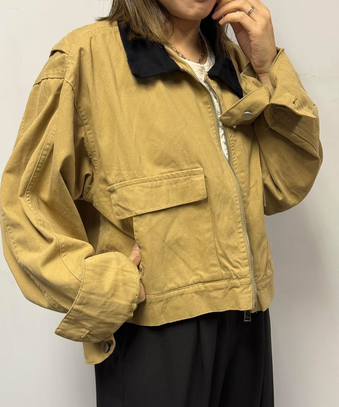 📌薄斜布料, 單層 📌卡其襯黑色反領, 絕配👍🏻 📌衫身夠大, 但著上唔臃腫 📏尺寸:Free Size 胸圍: 48" 身長: 20"
