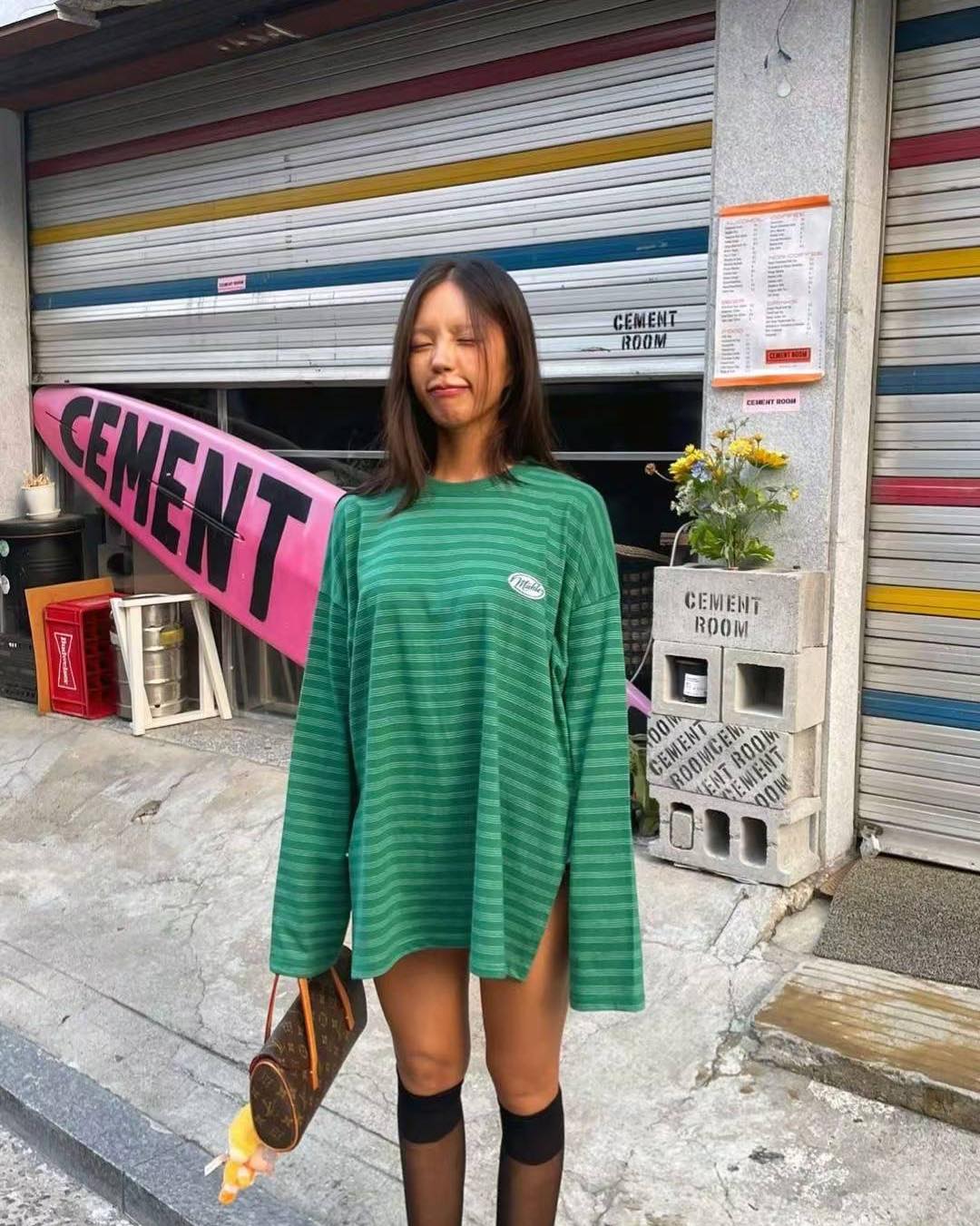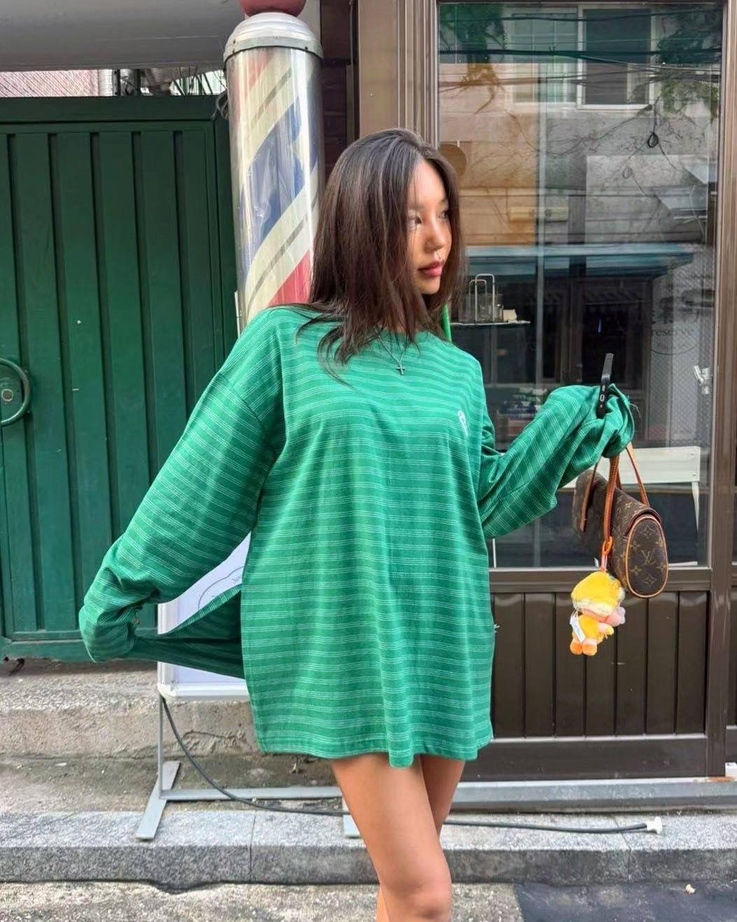 🔺Oversize 薄棉tee 🔺跌袖款好顯瘦 🔺個綠色超sharp 📏尺寸:Free Size 胸圍: 48" 身長: 28.5"