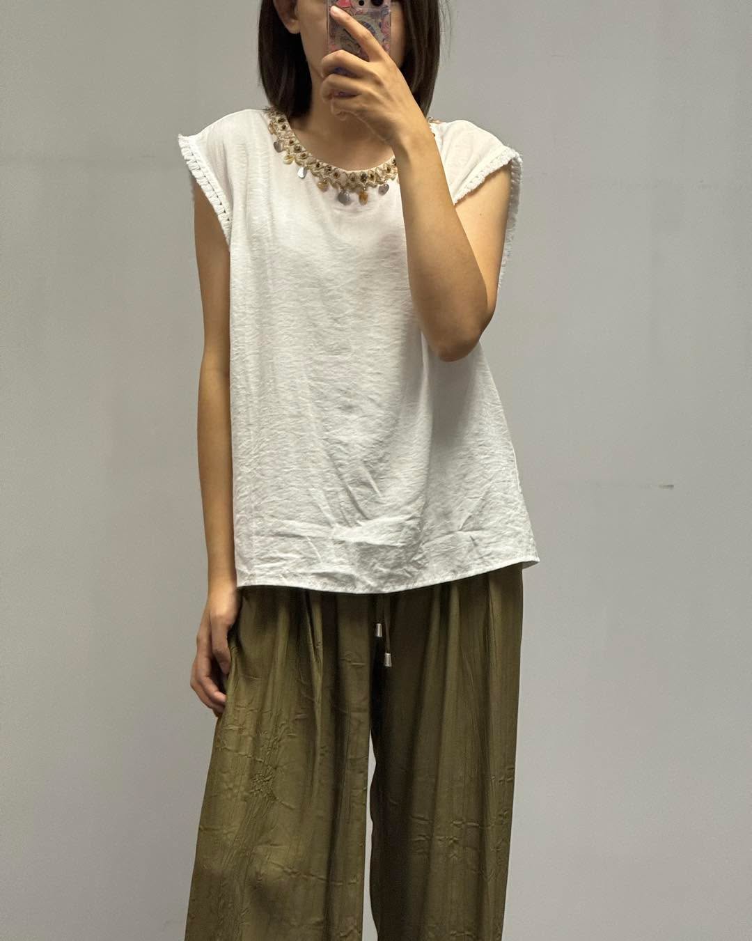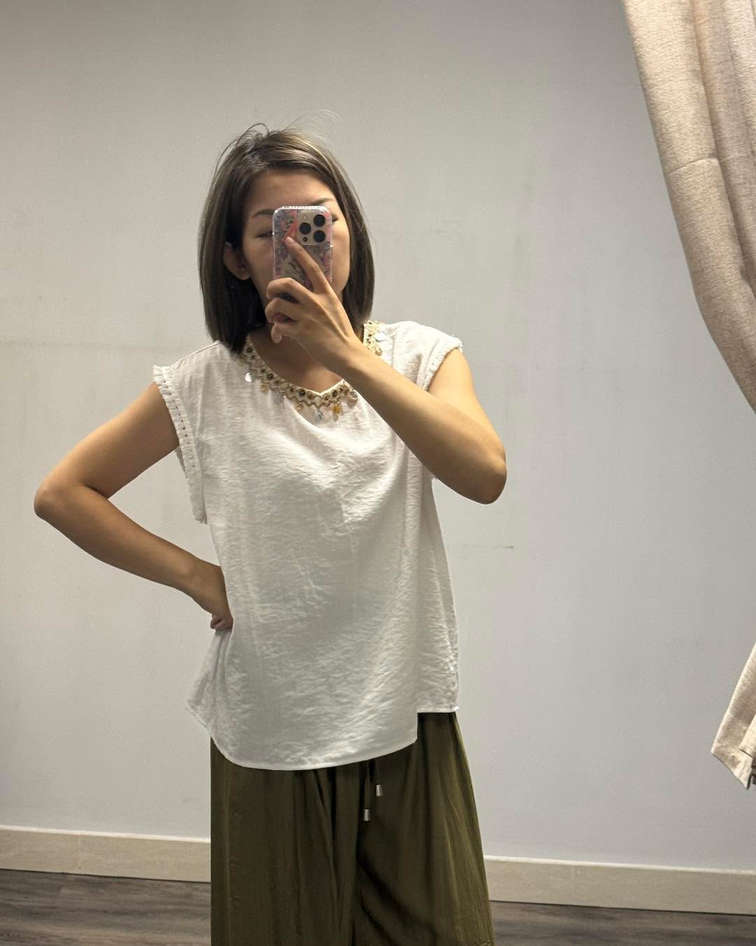 ▪️棉麻布料極度舒爽, 亦唔會「吉」肉 ▪️沿領穿有唔同款式嘅貝殼, 好colorful ▪️浴袖口車上小流蘇 ▪️闊肩設計, 可以輕微遮一遮手臂 ▪️後中開鈕用左木色鈕, 配合返自然嘅波希米亞風 📏尺寸:Free Size 胸圍: 44" 身長 :23"