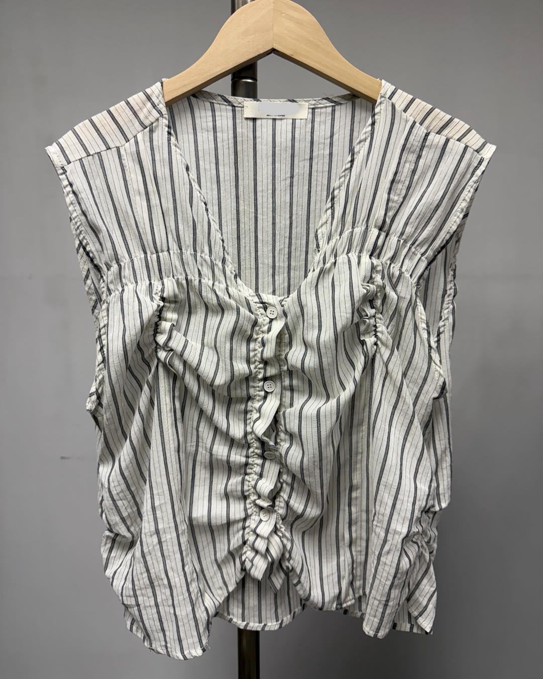 🔹輕皺恤衫棉布料,又輕又薄 🔹直條紋顯修身 🔹前幅有多行橡筋縮褶,成件衫好有立體感 📏尺寸:Free Size 胸圍: 42" 身長: 22"