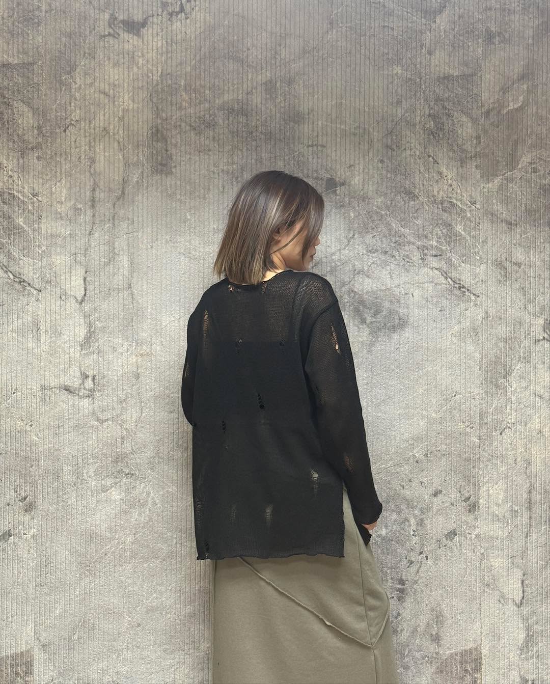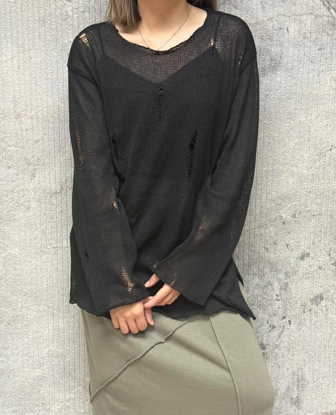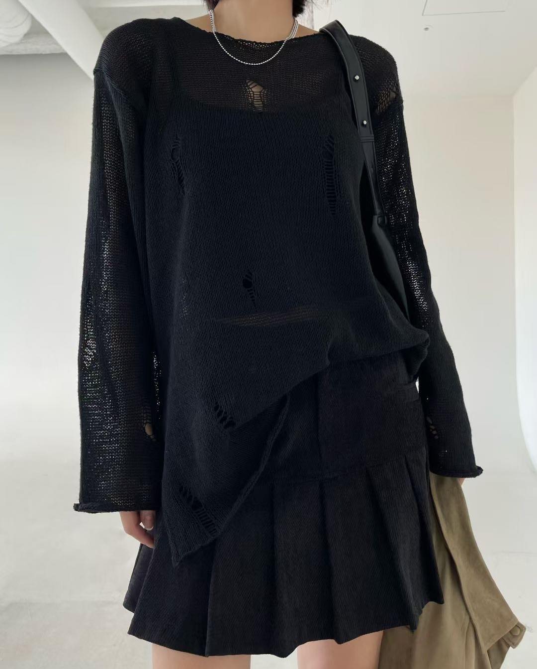 秋涼天氣著呢類形線仔衫最適合。 See through 破洞設計。 兩邊有側叉。 📏尺寸:Free Size 胸圍: 44" 身長: 28.5"