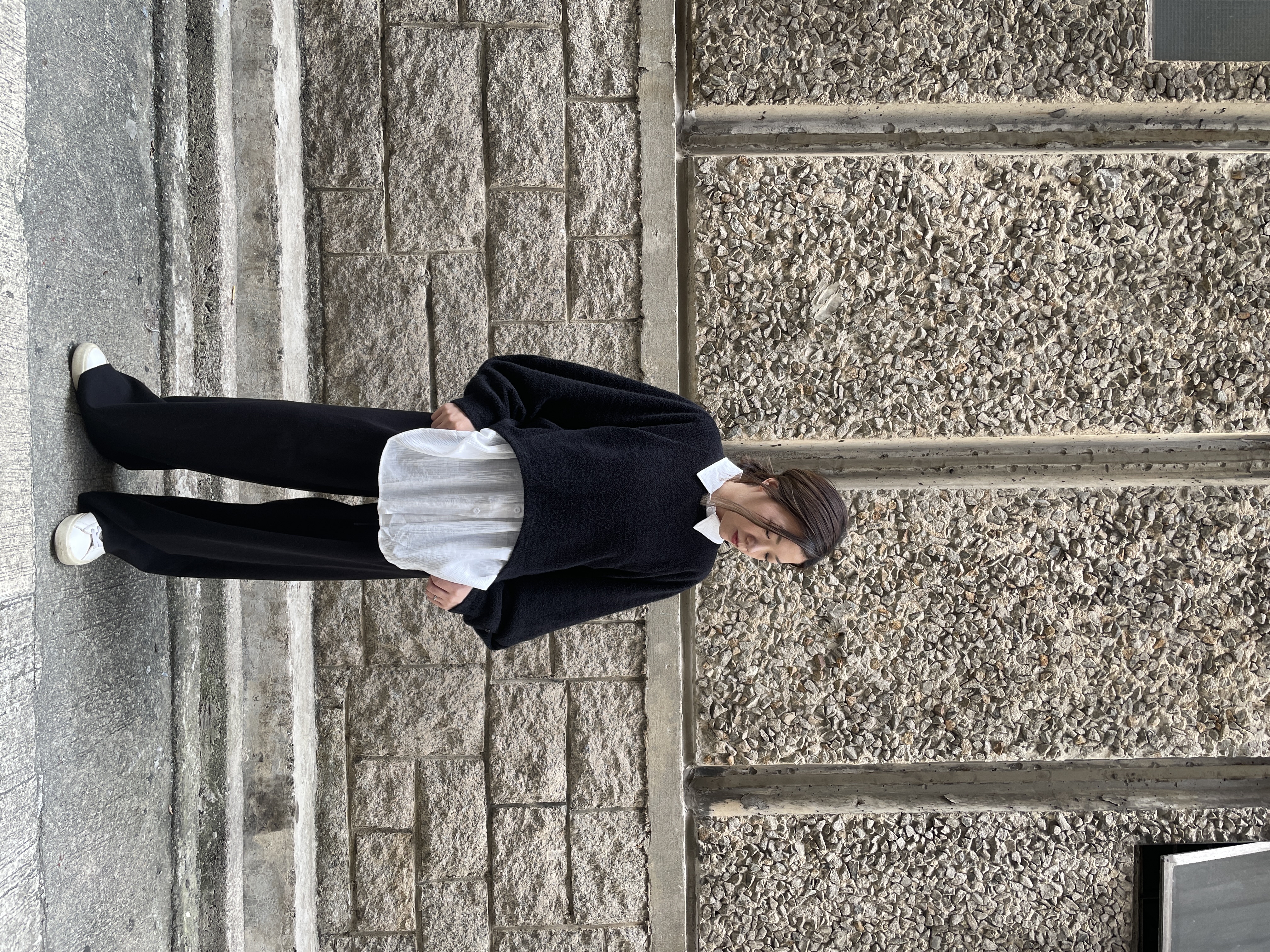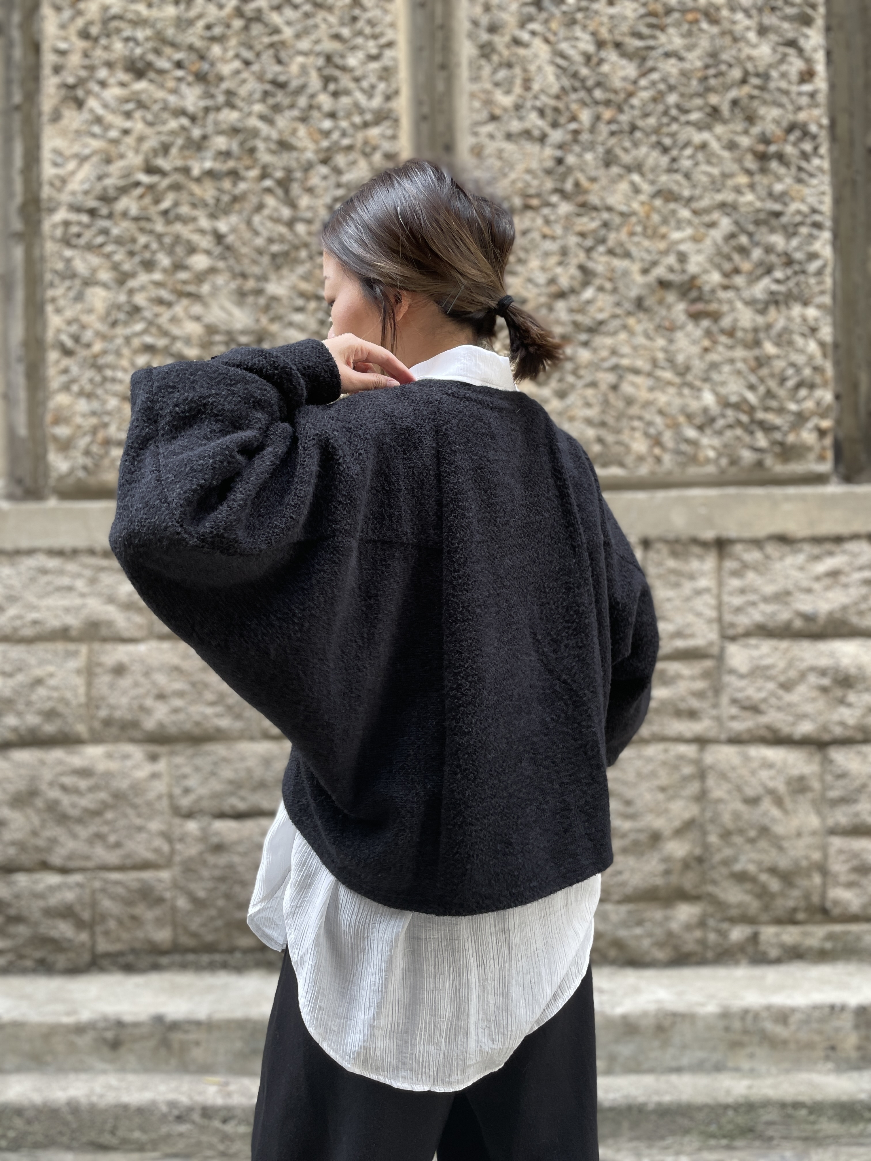 呢件上衣特別在個SHAPE,蝙蝠袖,前短後長,配襯高腰下身好PERFECT,前短可以露出下身腰位,後長可以蓋到少少PAT PAT位置。黑色絨面有少少陰陽色,望落去幾高貴。 📏尺寸:Free Size 胸圍: 52" 身長: 18" (前長), 23" (後長) 🏷️$310